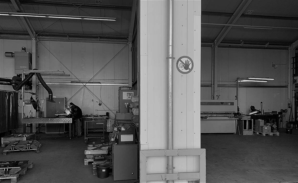 -> Schweißplätze samt Werkzeug- und Schleifeinrichtungen sind räumlich strikt getrennt