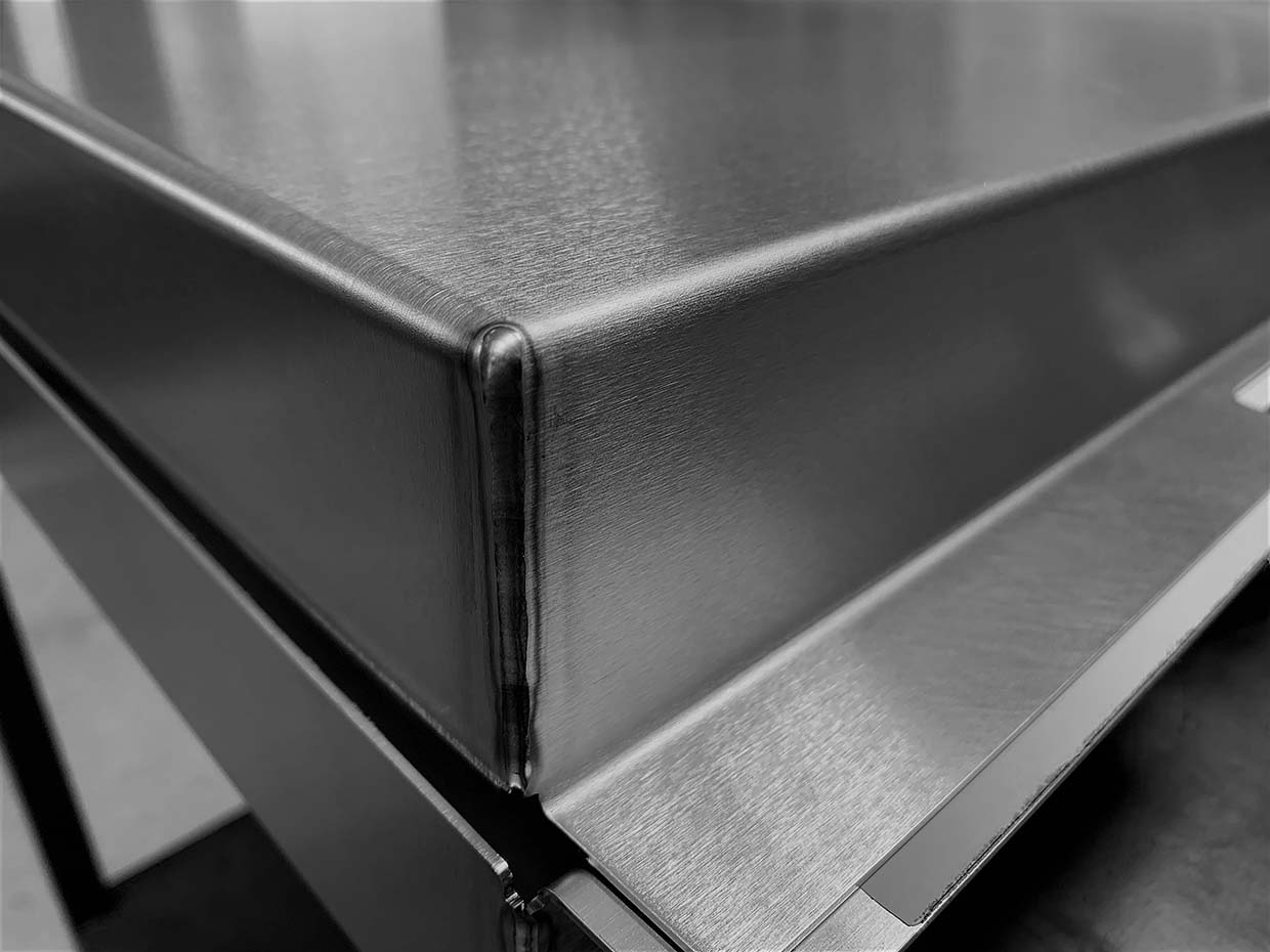 Maschinelles Schleifen, Entgraten, Bürsten und Satinieren von Edelstahl-/ sowie Aluminiumbauteilen bis zu einer Bauteilbreite von 1350 mm, einer Bauteillänge von 6000 mm und einer Blechdicke zwischen 0,5 und 25 mm |